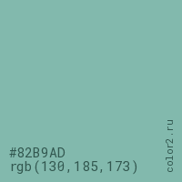 Цвет #82B9AD в цветовой модели RGB обозначается тремя октетами (130, 185, 173) в десятичном формате и #82B9AD в шестнадцатиричном (hex) формате, которые являются интенсивностью красного 130 (hex 82), интенсивность зелёного 185 (hex B9) и интенсивность синего 173 (hex AD).