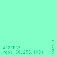 Цвет #82FFC7 в цветовой модели RGB обозначается тремя октетами (130, 255, 199) в десятичном формате и #82FFC7 в шестнадцатиричном (hex) формате, которые являются интенсивностью красного 130 (hex 82), интенсивность зелёного 255 (hex FF) и интенсивность синего 199 (hex C7).