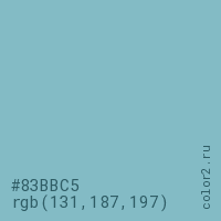 Цвет #83BBC5 в цветовой модели RGB обозначается тремя октетами (131, 187, 197) в десятичном формате и #83BBC5 в шестнадцатиричном (hex) формате, которые являются интенсивностью красного 131 (hex 83), интенсивность зелёного 187 (hex BB) и интенсивность синего 197 (hex C5).