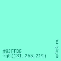 Цвет #83FFDB в цветовой модели RGB обозначается тремя октетами (131, 255, 219) в десятичном формате и #83FFDB в шестнадцатиричном (hex) формате, которые являются интенсивностью красного 131 (hex 83), интенсивность зелёного 255 (hex FF) и интенсивность синего 219 (hex DB).