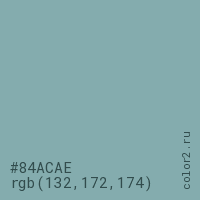 Цвет #84ACAE в цветовой модели RGB обозначается тремя октетами (132, 172, 174) в десятичном формате и #84ACAE в шестнадцатиричном (hex) формате, которые являются интенсивностью красного 132 (hex 84), интенсивность зелёного 172 (hex AC) и интенсивность синего 174 (hex AE).