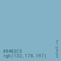 Цвет #84B2C5 в цветовой модели RGB обозначается тремя октетами (132, 178, 197) в десятичном формате и #84B2C5 в шестнадцатиричном (hex) формате, которые являются интенсивностью красного 132 (hex 84), интенсивность зелёного 178 (hex B2) и интенсивность синего 197 (hex C5).