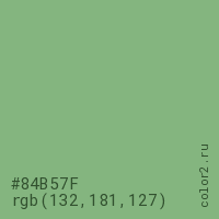 Цвет #84B57F в цветовой модели RGB обозначается тремя октетами (132, 181, 127) в десятичном формате и #84B57F в шестнадцатиричном (hex) формате, которые являются интенсивностью красного 132 (hex 84), интенсивность зелёного 181 (hex B5) и интенсивность синего 127 (hex 7F).