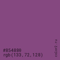Цвет #854880 в цветовой модели RGB обозначается тремя октетами (133, 72, 128) в десятичном формате и #854880 в шестнадцатиричном (hex) формате, которые являются интенсивностью красного 133 (hex 85), интенсивность зелёного 72 (hex 48) и интенсивность синего 128 (hex 80).