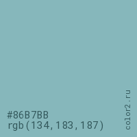 Цвет #86B7BB в цветовой модели RGB обозначается тремя октетами (134, 183, 187) в десятичном формате и #86B7BB в шестнадцатиричном (hex) формате, которые являются интенсивностью красного 134 (hex 86), интенсивность зелёного 183 (hex B7) и интенсивность синего 187 (hex BB).