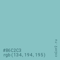 Цвет #86C2C3 в цветовой модели RGB обозначается тремя октетами (134, 194, 195) в десятичном формате и #86C2C3 в шестнадцатиричном (hex) формате, которые являются интенсивностью красного 134 (hex 86), интенсивность зелёного 194 (hex C2) и интенсивность синего 195 (hex C3).