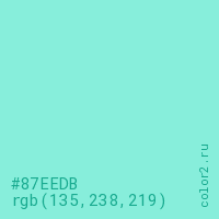 Цвет #87EEDB в цветовой модели RGB обозначается тремя октетами (135, 238, 219) в десятичном формате и #87EEDB в шестнадцатиричном (hex) формате, которые являются интенсивностью красного 135 (hex 87), интенсивность зелёного 238 (hex EE) и интенсивность синего 219 (hex DB).