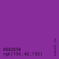 Цвет #882B9B в цветовой модели RGB обозначается тремя октетами (136, 43, 155) в десятичном формате и #882B9B в шестнадцатиричном (hex) формате, которые являются интенсивностью красного 136 (hex 88), интенсивность зелёного 43 (hex 2B) и интенсивность синего 155 (hex 9B).
