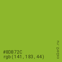 Цвет #8DB72C в цветовой модели RGB обозначается тремя октетами (141, 183, 44) в десятичном формате и #8DB72C в шестнадцатиричном (hex) формате, которые являются интенсивностью красного 141 (hex 8D), интенсивность зелёного 183 (hex B7) и интенсивность синего 44 (hex 2C).