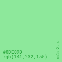 Цвет #8DE89B в цветовой модели RGB обозначается тремя октетами (141, 232, 155) в десятичном формате и #8DE89B в шестнадцатиричном (hex) формате, которые являются интенсивностью красного 141 (hex 8D), интенсивность зелёного 232 (hex E8) и интенсивность синего 155 (hex 9B).