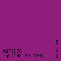 Цвет #8F1D7C в цветовой модели RGB обозначается тремя октетами (143, 29, 124) в десятичном формате и #8F1D7C в шестнадцатиричном (hex) формате, которые являются интенсивностью красного 143 (hex 8F), интенсивность зелёного 29 (hex 1D) и интенсивность синего 124 (hex 7C).