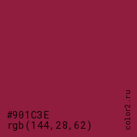 Цвет #901C3E в цветовой модели RGB обозначается тремя октетами (144, 28, 62) в десятичном формате и #901C3E в шестнадцатиричном (hex) формате, которые являются интенсивностью красного 144 (hex 90), интенсивность зелёного 28 (hex 1C) и интенсивность синего 62 (hex 3E).