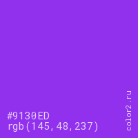 Цвет #9130ED в цветовой модели RGB обозначается тремя октетами (145, 48, 237) в десятичном формате и #9130ED в шестнадцатиричном (hex) формате, которые являются интенсивностью красного 145 (hex 91), интенсивность зелёного 48 (hex 30) и интенсивность синего 237 (hex ED).