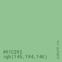 Цвет #91C292 в цветовой модели RGB обозначается тремя октетами (145, 194, 146) в десятичном формате и #91C292 в шестнадцатиричном (hex) формате, которые являются интенсивностью красного 145 (hex 91), интенсивность зелёного 194 (hex C2) и интенсивность синего 146 (hex 92).