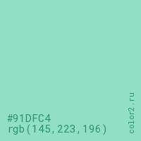Цвет #91DFC4 в цветовой модели RGB обозначается тремя октетами (145, 223, 196) в десятичном формате и #91DFC4 в шестнадцатиричном (hex) формате, которые являются интенсивностью красного 145 (hex 91), интенсивность зелёного 223 (hex DF) и интенсивность синего 196 (hex C4).