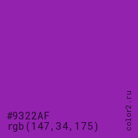 | RGB | rgb(147, 34, 175) |