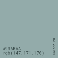 Цвет #93ABAA в цветовой модели RGB обозначается тремя октетами (147, 171, 170) в десятичном формате и #93ABAA в шестнадцатиричном (hex) формате, которые являются интенсивностью красного 147 (hex 93), интенсивность зелёного 171 (hex AB) и интенсивность синего 170 (hex AA).