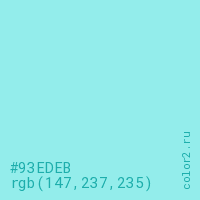 Цвет #93EDEB в цветовой модели RGB обозначается тремя октетами (147, 237, 235) в десятичном формате и #93EDEB в шестнадцатиричном (hex) формате, которые являются интенсивностью красного 147 (hex 93), интенсивность зелёного 237 (hex ED) и интенсивность синего 235 (hex EB).