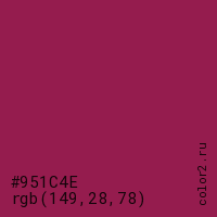 Цвет #951C4E в цветовой модели RGB обозначается тремя октетами (149, 28, 78) в десятичном формате и #951C4E в шестнадцатиричном (hex) формате, которые являются интенсивностью красного 149 (hex 95), интенсивность зелёного 28 (hex 1C) и интенсивность синего 78 (hex 4E).