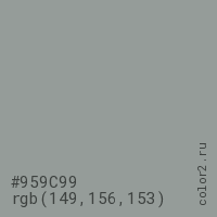 Цвет #959C99 в цветовой модели RGB обозначается тремя октетами (149, 156, 153) в десятичном формате и #959C99 в шестнадцатиричном (hex) формате, которые являются интенсивностью красного 149 (hex 95), интенсивность зелёного 156 (hex 9C) и интенсивность синего 153 (hex 99).