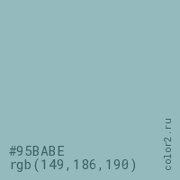 Цвет #95BABE в цветовой модели RGB обозначается тремя октетами (149, 186, 190) в десятичном формате и #95BABE в шестнадцатиричном (hex) формате, которые являются интенсивностью красного 149 (hex 95), интенсивность зелёного 186 (hex BA) и интенсивность синего 190 (hex BE).