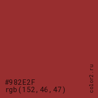Цвет #982E2F в цветовой модели RGB обозначается тремя октетами (152, 46, 47) в десятичном формате и #982E2F в шестнадцатиричном (hex) формате, которые являются интенсивностью красного 152 (hex 98), интенсивность зелёного 46 (hex 2E) и интенсивность синего 47 (hex 2F).