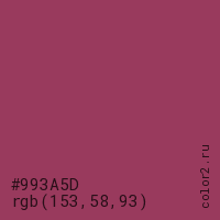 Цвет #993A5D в цветовой модели RGB обозначается тремя октетами (153, 58, 93) в десятичном формате и #993A5D в шестнадцатиричном (hex) формате, которые являются интенсивностью красного 153 (hex 99), интенсивность зелёного 58 (hex 3A) и интенсивность синего 93 (hex 5D).