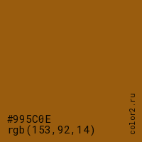 Цвет #995C0E в цветовой модели RGB обозначается тремя октетами (153, 92, 14) в десятичном формате и #995C0E в шестнадцатиричном (hex) формате, которые являются интенсивностью красного 153 (hex 99), интенсивность зелёного 92 (hex 5C) и интенсивность синего 14 (hex 0E).
