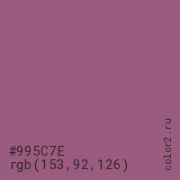 Цвет #995C7E в цветовой модели RGB обозначается тремя октетами (153, 92, 126) в десятичном формате и #995C7E в шестнадцатиричном (hex) формате, которые являются интенсивностью красного 153 (hex 99), интенсивность зелёного 92 (hex 5C) и интенсивность синего 126 (hex 7E).