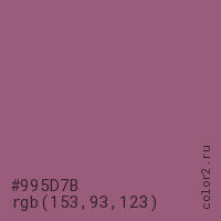 Цвет #995D7B в цветовой модели RGB обозначается тремя октетами (153, 93, 123) в десятичном формате и #995D7B в шестнадцатиричном (hex) формате, которые являются интенсивностью красного 153 (hex 99), интенсивность зелёного 93 (hex 5D) и интенсивность синего 123 (hex 7B).