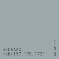 Цвет #9DAAAC в цветовой модели RGB обозначается тремя октетами (157, 170, 172) в десятичном формате и #9DAAAC в шестнадцатиричном (hex) формате, которые являются интенсивностью красного 157 (hex 9D), интенсивность зелёного 170 (hex AA) и интенсивность синего 172 (hex AC).