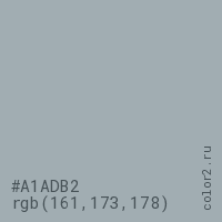 Цвет #A1ADB2 в цветовой модели RGB обозначается тремя октетами (161, 173, 178) в десятичном формате и #A1ADB2 в шестнадцатиричном (hex) формате, которые являются интенсивностью красного 161 (hex A1), интенсивность зелёного 173 (hex AD) и интенсивность синего 178 (hex B2).