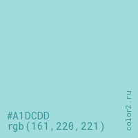 Цвет #A1DCDD в цветовой модели RGB обозначается тремя октетами (161, 220, 221) в десятичном формате и #A1DCDD в шестнадцатиричном (hex) формате, которые являются интенсивностью красного 161 (hex A1), интенсивность зелёного 220 (hex DC) и интенсивность синего 221 (hex DD).