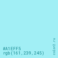 Цвет #A1EFF5 в цветовой модели RGB обозначается тремя октетами (161, 239, 245) в десятичном формате и #A1EFF5 в шестнадцатиричном (hex) формате, которые являются интенсивностью красного 161 (hex A1), интенсивность зелёного 239 (hex EF) и интенсивность синего 245 (hex F5).