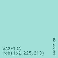 Цвет #A2E1DA в цветовой модели RGB обозначается тремя октетами (162, 225, 218) в десятичном формате и #A2E1DA в шестнадцатиричном (hex) формате, которые являются интенсивностью красного 162 (hex A2), интенсивность зелёного 225 (hex E1) и интенсивность синего 218 (hex DA).