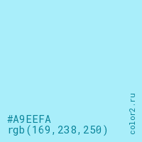 Цвет #A9EEFA в цветовой модели RGB обозначается тремя октетами (169, 238, 250) в десятичном формате и #A9EEFA в шестнадцатиричном (hex) формате, которые являются интенсивностью красного 169 (hex A9), интенсивность зелёного 238 (hex EE) и интенсивность синего 250 (hex FA).