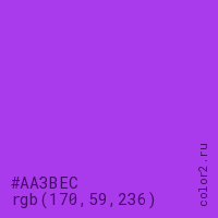 Цвет #AA3BEC в цветовой модели RGB обозначается тремя октетами (170, 59, 236) в десятичном формате и #AA3BEC в шестнадцатиричном (hex) формате, которые являются интенсивностью красного 170 (hex AA), интенсивность зелёного 59 (hex 3B) и интенсивность синего 236 (hex EC).