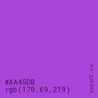 Цвет #AA45DB в цветовой модели RGB обозначается тремя октетами (170, 69, 219) в десятичном формате и #AA45DB в шестнадцатиричном (hex) формате, которые являются интенсивностью красного 170 (hex AA), интенсивность зелёного 69 (hex 45) и интенсивность синего 219 (hex DB).