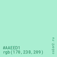Цвет #AAEED1 в цветовой модели RGB обозначается тремя октетами (170, 238, 209) в десятичном формате и #AAEED1 в шестнадцатиричном (hex) формате, которые являются интенсивностью красного 170 (hex AA), интенсивность зелёного 238 (hex EE) и интенсивность синего 209 (hex D1).