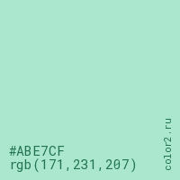 Цвет #ABE7CF в цветовой модели RGB обозначается тремя октетами (171, 231, 207) в десятичном формате и #ABE7CF в шестнадцатиричном (hex) формате, которые являются интенсивностью красного 171 (hex AB), интенсивность зелёного 231 (hex E7) и интенсивность синего 207 (hex CF).