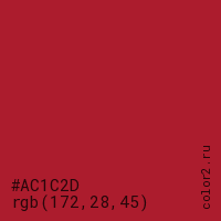 Цвет #AC1C2D в цветовой модели RGB обозначается тремя октетами (172, 28, 45) в десятичном формате и #AC1C2D в шестнадцатиричном (hex) формате, которые являются интенсивностью красного 172 (hex AC), интенсивность зелёного 28 (hex 1C) и интенсивность синего 45 (hex 2D).
