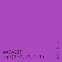 Цвет #AC48BF в цветовой модели RGB обозначается тремя октетами (172, 72, 191) в десятичном формате и #AC48BF в шестнадцатиричном (hex) формате, которые являются интенсивностью красного 172 (hex AC), интенсивность зелёного 72 (hex 48) и интенсивность синего 191 (hex BF).