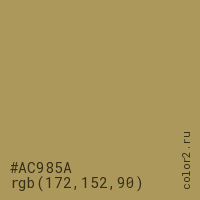 Цвет #AC985A в цветовой модели RGB обозначается тремя октетами (172, 152, 90) в десятичном формате и #AC985A в шестнадцатиричном (hex) формате, которые являются интенсивностью красного 172 (hex AC), интенсивность зелёного 152 (hex 98) и интенсивность синего 90 (hex 5A).