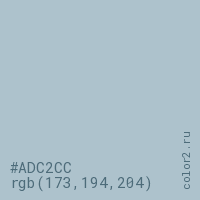 Цвет #ADC2CC в цветовой модели RGB обозначается тремя октетами (173, 194, 204) в десятичном формате и #ADC2CC в шестнадцатиричном (hex) формате, которые являются интенсивностью красного 173 (hex AD), интенсивность зелёного 194 (hex C2) и интенсивность синего 204 (hex CC).