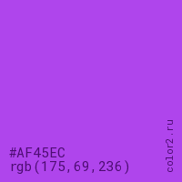 Цвет #AF45EC в цветовой модели RGB обозначается тремя октетами (175, 69, 236) в десятичном формате и #AF45EC в шестнадцатиричном (hex) формате, которые являются интенсивностью красного 175 (hex AF), интенсивность зелёного 69 (hex 45) и интенсивность синего 236 (hex EC).