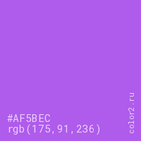 Цвет #AF5BEC в цветовой модели RGB обозначается тремя октетами (175, 91, 236) в десятичном формате и #AF5BEC в шестнадцатиричном (hex) формате, которые являются интенсивностью красного 175 (hex AF), интенсивность зелёного 91 (hex 5B) и интенсивность синего 236 (hex EC).