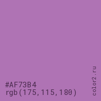 Цвет #AF73B4 в цветовой модели RGB обозначается тремя октетами (175, 115, 180) в десятичном формате и #AF73B4 в шестнадцатиричном (hex) формате, которые являются интенсивностью красного 175 (hex AF), интенсивность зелёного 115 (hex 73) и интенсивность синего 180 (hex B4).