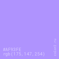 Цвет #AF93FE в цветовой модели RGB обозначается тремя октетами (175, 147, 254) в десятичном формате и #AF93FE в шестнадцатиричном (hex) формате, которые являются интенсивностью красного 175 (hex AF), интенсивность зелёного 147 (hex 93) и интенсивность синего 254 (hex FE).