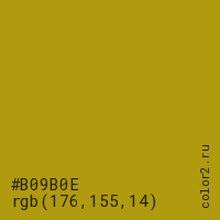 Цвет #B09B0E в цветовой модели RGB обозначается тремя октетами (176, 155, 14) в десятичном формате и #B09B0E в шестнадцатиричном (hex) формате, которые являются интенсивностью красного 176 (hex B0), интенсивность зелёного 155 (hex 9B) и интенсивность синего 14 (hex 0E).