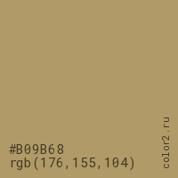 Цвет #B09B68 в цветовой модели RGB обозначается тремя октетами (176, 155, 104) в десятичном формате и #B09B68 в шестнадцатиричном (hex) формате, которые являются интенсивностью красного 176 (hex B0), интенсивность зелёного 155 (hex 9B) и интенсивность синего 104 (hex 68).